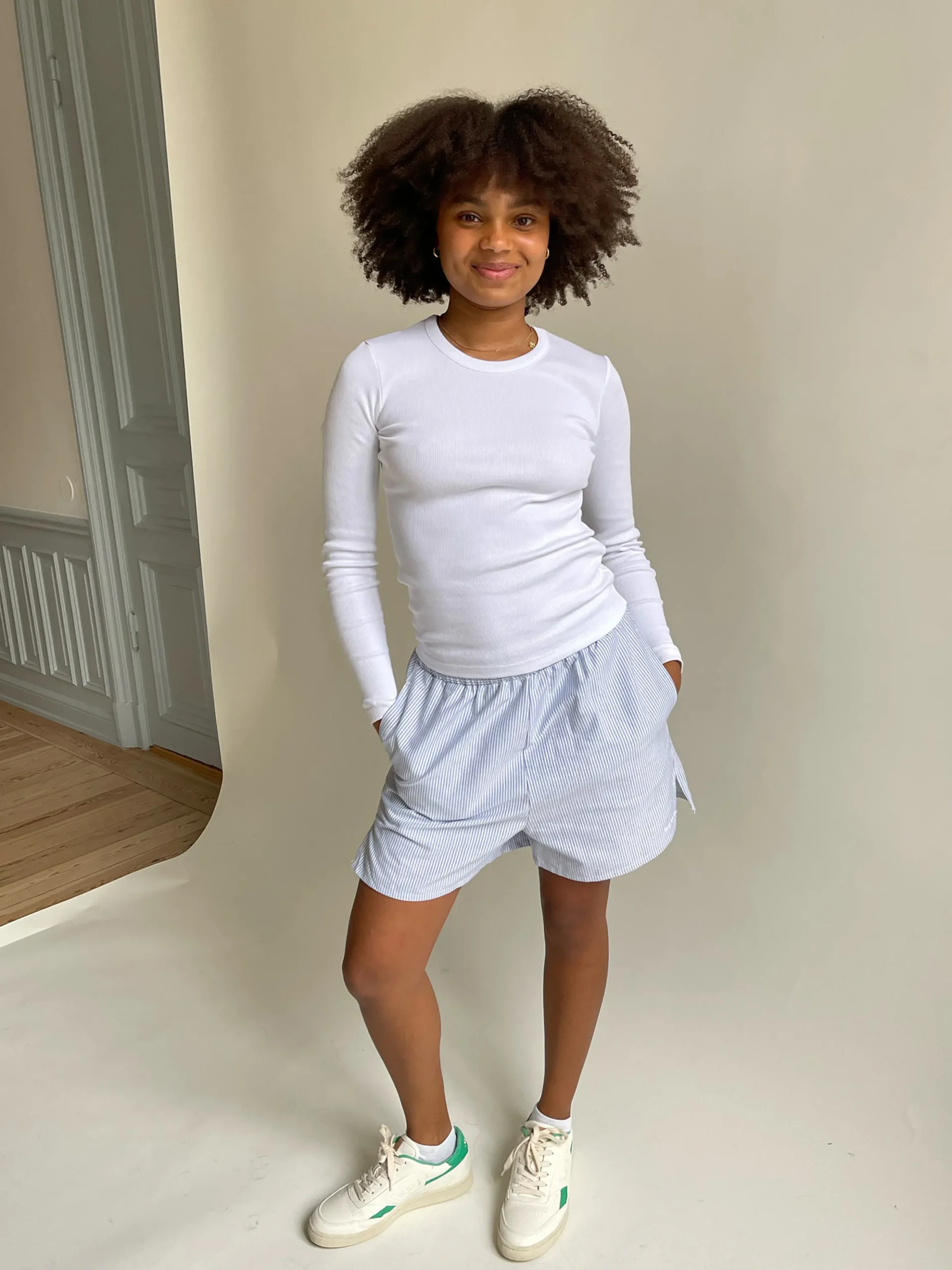 Djerf Avenue Daglig Langarmad Topp Ribbad Vit Outlet